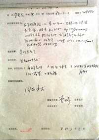 李洪志曾住院手術(shù)(一) ![]() 8月3日,吉林省人民醫(yī)院發(fā)現(xiàn)李洪志曾在該醫(yī)院做過(guò)闌尾炎手術(shù)的住院病歷。李洪志在1984年7月8日早晨突 發(fā)急性化膿性闌尾炎,住進(jìn)吉林省人民醫(yī)院普通外科,發(fā)燒38.9度,于當(dāng)天下午實(shí)施闌尾切除手術(shù),住院10天。由于當(dāng) 時(shí)醫(yī)生筆誤,錯(cuò)將李洪志寫(xiě)作“李宏志”,根據(jù)病歷上的患者年齡、工作單位、家庭住址及家屬(李妻)的手術(shù)簽字,可確定 患者即李洪志。這是李洪志手術(shù)時(shí),其妻簽署的術(shù)前文件。經(jīng)公安部門(mén)鑒定,簽字確為李洪志妻子李瑞親筆所簽。張寶江攝( 新華社稿 傳真照片) |