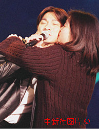 女歌迷擁吻獲華語歌曲排行第一的劉德華 2000年1月29日 08:11 ![]() 華語榜中榜九九最佳歌曲、歌手評(píng)選暨頒獎(jiǎng)典禮二十七日晚在北京隆重舉行,來自香港、臺(tái)灣和內(nèi)地的幾十名著名歌手匯聚京城。香港著名歌星劉德華演唱的《愛你一萬年》獲排行第一,并獲得跨世紀(jì)男歌手獎(jiǎng)。圖為在演出現(xiàn)場(chǎng)一名女歌迷沖上臺(tái)擁吻正在演唱的劉德華。作者:錢興強(qiáng) |