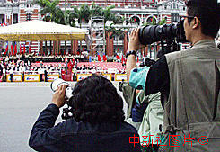 圖文:世界各地記者關(guān)注臺灣地區(qū)新領(lǐng)導(dǎo)人出場 2000年5月23日 11:21 ![]() 來自世界各地的約九百名記者,對臺灣地區(qū)新領(lǐng)導(dǎo)人二十日出場相當(dāng)關(guān)注。中新社記者:王順 攝