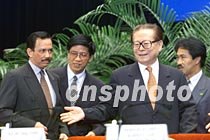 圖文:江澤民會(huì)見(jiàn)文萊蘇丹 2001年5月15日 15:45 ![]() 中國(guó)國(guó)家主席江澤民與文萊蘇丹博爾基亞,十五日在北京人民大會(huì)堂出席APEC人力資源能力建設(shè)高峰會(huì)開(kāi)幕式。中新社記者 毛建軍 攝