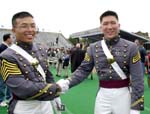 七華裔西點軍校畢業(yè)(附圖) 2001年6月4日 13:54 ![]() 洪偉杰(左)以第十五名的成績登畢業(yè)生榮譽榜,臺北市長馬英九的外甥余靖(右)亦獲多項榮譽 中新網(wǎng)紐約6月3日消息:位于紐約上州的美國陸軍官校(西點軍校,United States Military Academy atWest Point) 2日在滂沱大雨中舉行2001年畢業(yè)典禮,901名應(yīng)屆畢業(yè)生中,有7名華裔子弟,其中洪偉杰以第十五名的成績登畢業(yè)生榮譽榜。 這七名華裔子弟是:洪偉杰、潘安驪、余靖、鄭建明、李之華、陳德凱(譯音)和楊丹尼爾(譯音),其中潘安驪是昨日唯一有華裔血統(tǒng)的女性畢業(yè)生,而余靖是臺北市長馬英九的外甥。 |