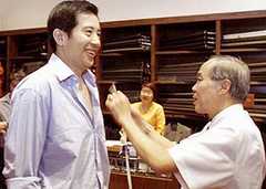 圖文:秦漢打籃球獲得標(biāo)準(zhǔn)模特身材 2001年08月02日 18:11 ![]() 中新網(wǎng)新加坡8月2日消息:“40.5,34.5,40.5。標(biāo)準(zhǔn)的模特兒身材!必(fù)責(zé)量身的裁縫師陸先生這樣稱贊在新加坡訂做西服的臺(tái)灣著名演員秦漢。 20年來身材沒有走樣,秦漢歸功于經(jīng)常打籃球。他還和此間聯(lián)合早報(bào)記者開玩笑說:“經(jīng)常和像你這樣的年輕人一起打球!彼踔烈膊恢t虛地說,記者應(yīng)該打不過他。 秦漢主演的新劇《勝券在握》本月8日將在新加坡開拍,該劇為秦漢訂做了十件西裝大衣。 秦漢則會(huì)在獅城逗留四個(gè)多月,以拍攝這部40集的重頭劇。 他在劇中和米雪扮演夫妻,可是感情出現(xiàn)裂痕,太太離開他后,他又和陳潔儀發(fā)展一段忘年之戀。 “我在劇中有很多缺點(diǎn),喜歡罵人,自命不凡,愛找人麻煩,對(duì)人刻薄,但是有幽默感,”秦漢簡直是在“數(shù)落”自己的角色!拔已萏嗪萌说慕巧寺铩! |