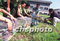 圖:北京放生麻雀 2001年08月24日 20:15 ![]() 二十四日,北京市林政稽查大隊(duì)在京郊森林公園放生五百多只麻雀,這些麻雀是昨日在鳥市稽查救回的。中國目前已加大對各種野生動(dòng)物的保護(hù)力度,于去年八月立法規(guī)定:捕殺、出售、食用麻雀已屬違法。中新社記者 張宇 攝