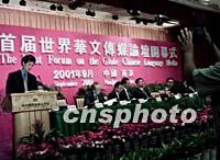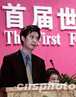 組圖:首屆世界華文傳媒論壇在南京開(kāi)幕 2001年09月16日 14:42 ![]() 首屆世界華文傳媒論壇十六日在南京開(kāi)幕,中國(guó)國(guó)務(wù)院僑務(wù)辦公室副主任兼中國(guó)新聞社社長(zhǎng)劉澤彭主持會(huì)議。中新社記者 王瑤 攝 ![]() 首屆世界華文傳媒論壇十六日在南京開(kāi)幕,中國(guó)新聞社總編輯郭招金在開(kāi)幕式上作《全球化浪潮中的海外傳媒的定位與角色》的發(fā)言。中新社記者 王瑤 攝