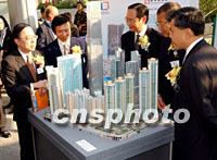 圖:香港地鐵物業(yè)夥同四大房地產(chǎn)商推介西九龍物業(yè) 2001年11月21日 19:41 ![]() 香港地鐵物業(yè)總監(jiān)何恒光(中),11月21日夥同恒隆集團主席陳啟宗(左一)、新鴻基地產(chǎn)副主席郭炳江(左二)、九龍倉集團主席李唯仁(左三)、永泰亞洲富聯(lián)國際行政總裁鄭維新等共同推介正在建設的西九龍面積達1,200萬平方尺的超大綜合發(fā)展項目。中新社記者 任晨鳴 攝 |