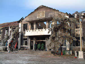 圖文:呼和浩特賓館大火 副市長等五人被燒死 2001年12月20日 10:10 ![]() 圖為火災(zāi)后的呼和浩特賓館現(xiàn)場 中央電臺圖片 ![]() 消防車輛現(xiàn)場救火 新華網(wǎng)圖 中新網(wǎng)呼和浩特12月20日消息:19日晚23時30分左右,內(nèi)蒙古自治區(qū)政府呼和浩特賓館發(fā)生一起重大火災(zāi)。 據(jù)新華社報道,在火災(zāi)中,呼和浩特市委常委、副市長林選才,北京瑪拉沁飯店副經(jīng)理史子義,呼和浩特市接待辦副主任王安明3人不幸燒死,另有17人燒傷,2人失蹤。 呼市消防支隊政委張學(xué)榮介紹,火災(zāi)由賓館北樓一樓舞廳燒起,現(xiàn)總共二層的北樓已全部坍塌。 事故發(fā)生后,內(nèi)蒙古自治區(qū)副主席王鳳歧即趕赴現(xiàn)場指揮救火工作,出動了180多人的消防隊伍。今日凌晨4時左右大火基本撲滅。 事故原因正在進(jìn)一步調(diào)查之中。(王占義吳獻(xiàn)) 呼和浩特火災(zāi)最新消息:3人燒死還有2人失蹤 中新網(wǎng)呼和浩特12月20日消息:19日晚23時30分左右,內(nèi)蒙古自治區(qū)政府呼和浩特賓館發(fā)生一起重大火災(zāi),新華社最新的消息說,除呼和浩特市委常委、副市長林選才,北京瑪拉沁飯店副經(jīng)理史子義,呼和浩特市接待辦副主任王安明3人被燒死外,另有17人燒傷,2人失蹤。 呼和浩特賓館北樓始建于1953年,次年投入使用。這座俄式建筑為兩層磚木結(jié)構(gòu),是集餐飲、住宿、娛樂為一體的綜合性公共場所。樓的東西跨度為140米,南北寬60米,建筑面積6000平方米,其中過火面積3000平方米。一樓有客房28間,二樓有35間,一樓的東北角為600平方米的皇都歌舞廳,大火就是由這里燒起的。 事故發(fā)生后,內(nèi)蒙古自治區(qū)副主席王鳳岐即趕赴現(xiàn)場指揮救火工作,出動了180多人的消防隊伍。今日凌晨4時左右大火基本撲滅。 殘垣斷壁景象凄慘呼和浩特賓館火災(zāi)現(xiàn)場目擊 中新網(wǎng)北京12月20日消息:呼和浩特賓館12月19日午夜時分發(fā)生的重大火災(zāi),造成3人死亡17人燒傷,另外尚有幾人下落不明。20日凌晨,新華社記者聞訊趕往火災(zāi)現(xiàn)場。記者現(xiàn)場看到,殘垣斷壁景象凄慘。 呼和浩特賓館地處市中心地帶的迎賓北路西側(cè)。昨天一日一夜大雪過后,通往賓館幾百米的路上成了冰河。記者只好沿路邊踏深雪前行。迎賓路口有警察把守,車輛禁止進(jìn)入。還沒進(jìn)入賓館大院,遠(yuǎn)遠(yuǎn)地就聽見消防車刺耳的聲音。在賓館大門口,映入眼簾的是地上飄零的彩帶、彩旗、紅燈籠。這些迎接圣誕、元旦節(jié)日的喜慶標(biāo)志在此刻顯得異常刺眼。一看就知道這兒剛剛發(fā)生過災(zāi)難。 兩位眼角流淚的婦女互相攙扶著向大門口走來,記者詢問得知他們是賓館的工作人員。其中的一位抹著眼睛簡短地告訴記者,火災(zāi)大約是在1 9日晚11點20分從舞廳燒起的。 院子里停滿了消防車輛。賓館北樓大半個已成一個空架,樓頂被大火燒塌,樓的廢墟里冒出陣陣濃煙。這是一座建于20世紀(jì)50年代的兩層磚木結(jié)構(gòu)俄式建筑,記者昨天上午剛在這座樓的二樓會議室開過自治區(qū)整頓市場秩序的一個會議,誰也不會想到現(xiàn)在這里全成了廢墟。 呼市消防支隊政委張學(xué)榮站在廢墟前告訴記者,接到報警后,消防部門共出動了36輛消防車、258人的撲火隊伍,到凌晨4時30分已將大火基本撲滅。他說樓的后面有兩個氟立昂儲罐,要是大火蔓延過去后果不堪設(shè)想。 在記者與張政委交談時,過來幾位客人說,他們的一位朋友下落不明。其中的一位告訴記者,他們來自烏蘭察布盟的集寧市,是來自治區(qū)開經(jīng)濟(jì)工作會的。他們的同伴集寧市計委主任就住在北樓二樓。昨天晚上,當(dāng)住在西樓的他們幾個聞知北樓著火時,便立即跑過去救人。他們找來一個梯子,攀上去砸開同伴住的房間的窗戶,不料里面竄出濃煙,他們只好迅速撤離,同伴的下落至今不明,他們臉上布滿焦急的神情,請求消防隊員再到里面找一找。 記者看幾名消防隊員走進(jìn)樓內(nèi)尋人,忙緊跟而入,但進(jìn)入門口時被張政委大聲叫住:“你不要過去,這大樓都燒酥了,我們都不敢進(jìn)去。”記者只好退回。過了一會,尋人的消防隊員走出來無奈地說:“一樓還能看清楚,但二樓里面全是灰燼,啥也看不出來! 上午7時許,內(nèi)蒙古自治區(qū)主席烏云其木格、區(qū)委副書記楊利民、秘書長任亞平、呼和浩特市委書記楊晶、自治區(qū)副主席王鳳岐、牛玉儒等先后趕往火災(zāi)現(xiàn)場,并迅速成立了以王鳳岐為組長的火災(zāi)事故調(diào)查小組;馂(zāi)的原因正在調(diào)查之中。(吳獻(xiàn)錢詠虹)(完) 呼和浩特火災(zāi)現(xiàn)場又發(fā)現(xiàn)2死者死亡人數(shù)增至5名 中新網(wǎng)呼和浩特12月20日消息:呼和浩特賓館火災(zāi)現(xiàn)場又清理出2名遇難死者。到今天下午3點,火災(zāi)死亡人數(shù)增加至5人。 新華社記者在火災(zāi)現(xiàn)場看到,內(nèi)蒙古自治區(qū)和呼市兩級公安、消防和有關(guān)部門的救助人員正在清理火災(zāi)過后現(xiàn)場的各類物品,包括逃生者遺留在在房間里的物品。(吳獻(xiàn)錢 詠虹) |