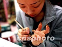 圖:涂畫指甲的時尚女孩兒 2002年01月24日 15:28 ![]() 一位女孩二十四日在北京華威商城的“美甲”店,學(xué)習(xí)為假指甲描畫花紋。現(xiàn)代的北京女孩不僅經(jīng)常光顧美容院進行皮膚護理,而且日益視指甲的護理與修飾為時尚。中新社圖 劉殊瑾 攝 |