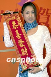 圖:郭可盈向觀眾拜年祝大家「恭喜發(fā)財」 2002年02月10日 09:09 ![]() 香港無線電視劇集《法網(wǎng)伊人》劇中眾藝員9日特為該劇舉行宣傳活動,藝員郭可盈向觀眾拜年祝大家“恭喜發(fā)財”。中新社傳真 鄧慶樂 攝