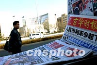 圖:人民幣利率今起下調(diào) 2002年02月21日 13:14 ![]() 一位市民二十一日經(jīng)過中國人民銀行北京總部前的一個(gè)報(bào)攤。為了克服世界經(jīng)濟(jì)增長持續(xù)放緩對(duì)中國經(jīng)濟(jì)發(fā)展帶來的不利影響,保持中國國民經(jīng)濟(jì)持續(xù)、快速、健康發(fā)展,中國人民銀行今起再次下調(diào)人民幣存、貸款利率。中新社圖 武仲林 攝