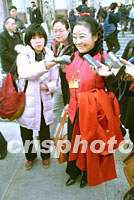 圖:政協(xié)委員龔如心吸引“兩會”記者 2002年03月03日 21:00 ![]() 全國政協(xié)九屆五次會議三日在北京人民大會堂開幕,政協(xié)委員、香港華貿(mào)董事局主席龔如心的亮麗衣著和獨特發(fā)型,吸引了大會堂前的記者。中新社圖 劉殊瑾 攝