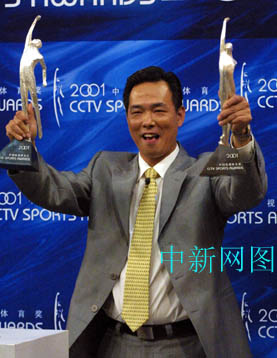 ![]() 國家乒乓球隊總教練蔡振華還擊敗了羽毛球隊總教練李永波獲得最佳教練員獎 中新社記者 李剛攝 ![]() 2001年度中國電視體育獎二十二日晚在北京隆重揭曉,為中國體育事業(yè)發(fā)展立下汗馬功勞的何振梁先生獲得終身成就獎。中新社記者 李剛攝