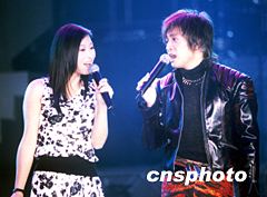 ![]() 二十二日晚,蘇有朋在滬舉辦了其入行以來首場個(gè)人演唱會(huì),在演唱會(huì)上與內(nèi)地女主持舒高深情對唱一曲“一路順風(fēng)”。圖為蘇有朋與舒高在演唱會(huì)上演唱。中新社圖 彥俊 攝