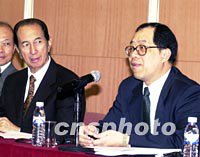 澳門特區(qū)政府與何鴻燊簽署18年博彩經(jīng)營合約 2002年03月29日 06:18 ![]() 澳門特區(qū)政府與澳門博彩股份有限公司二十八日簽署博彩經(jīng)營批給合同,圖為特區(qū)政府經(jīng)濟財政司司長譚伯源與澳博公司董事長何鴻燊在簽約儀式后共同舉行新聞發(fā)布會。中新社記者 宗金柱 攝