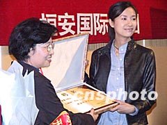 圖:影星徐靜蕾出任北京首屆女生節(jié)形象大使 2002年04月14日 19:22 ![]() 14日,北京首屆大學生女生節(jié)在北京師范大學開幕,影星徐靜蕾(右)出任形象大使并接受“健康形象大使”的聘書。中新社圖 盛佳鵬 攝
