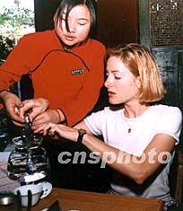 圖:美國(guó)姑娘向中國(guó)茶藝小姐學(xué)習(xí)茶道 2002年04月23日 14:24 ![]() 出生于法國(guó)的美國(guó)姑娘可麗,具有法國(guó)和美國(guó)的文化背景,近期執(zhí)教于泉州的她,卻對(duì)中國(guó)茶文化異常著迷,一有空閑,可麗便向中國(guó)茶藝小姐學(xué)習(xí)中國(guó)茶道技藝。中新社圖 陳勇 攝
