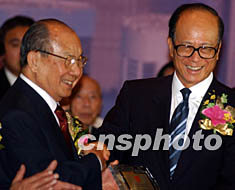 ![]() 擁有一百萬潮藉人口、一百多個潮藉社團的香港,4月23日成立了“香港潮屬社團總會”, 主席陳偉男向出任榮譽會長的香港長實集團主席李嘉誠頒發(fā)證書。中新社記者 任晨鳴 攝