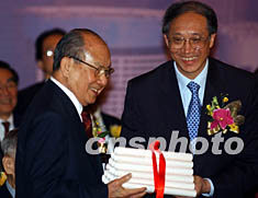 ![]() 擁有一百萬潮藉人口、一百多個潮藉社團(tuán)的香港,4月23日成立了“香港潮屬社團(tuán)總會”, 主席陳偉男向出任榮譽(yù)會長的香港長實集團(tuán)主席李嘉誠頒發(fā)證書。中新社記者 任晨鳴 攝