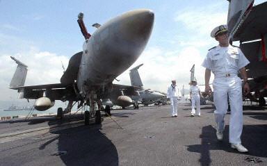 圖文:美國(guó)航空母艦"小鷹"號(hào)抵港訪問(wèn)并進(jìn)行補(bǔ)給 2002年04月30日 09:29 ![]() 美國(guó)航空母艦“小鷹”號(hào)29日上午抵達(dá)香港,進(jìn)行補(bǔ)給。這次訪港的美國(guó)艦隊(duì)一共有5艘軍艦,大約有6000名官兵!靶→棥碧(hào)是美國(guó)海軍現(xiàn)役軍艦中歷史最久的航空母艦。法新圖 中新網(wǎng)香港4月30日消息:美國(guó)航空母艦“小鷹號(hào)”為首的五艘海軍艦隊(duì)﹐昨天早上獲準(zhǔn)抵港訪問(wèn)并進(jìn)行補(bǔ)給。 據(jù)香港大公報(bào)報(bào)道,該艦隊(duì)將逗留至本周末離開﹐艦上約6000名官兵將上岸進(jìn)行為期4天的消閑購(gòu)物﹐預(yù)計(jì)會(huì)為香港帶來(lái)可觀收益。 訪港的美國(guó)軍艦停泊在香港青馬大橋?qū)γ嫠?#65104;五艘軍艦類型包括﹕航空母艦﹑巡洋艦﹑驅(qū)逐艦﹑巡防艦以及運(yùn)油船。其中于兩年前曾訪港的航空母艦“小鷹號(hào)”運(yùn)載了7種類型﹑共70多架戰(zhàn)機(jī)。 中國(guó)政府上月曾拒絕美國(guó)軍艦訪港。 “小鷹號(hào)”的發(fā)言人稱,此次訪港的最主要目的是觀光和作一些訓(xùn)練。大公報(bào)引述“內(nèi)部消息”說(shuō)﹐“小鷹號(hào)”赴港進(jìn)行的訓(xùn)練主要是防空導(dǎo)彈系統(tǒng)的測(cè)試﹐離港后估計(jì)會(huì)開往將舉行世界杯的韓國(guó)進(jìn)行戒備。發(fā)言人又表示,6000名官兵中﹐每天將有四分之一的人上岸消閑購(gòu)物。 美國(guó)軍艦每次來(lái)港平均會(huì)為香港旅游業(yè)帶來(lái)約4500港萬(wàn)元的收益。 另外,昨天是“小鷹號(hào)”41歲的生日。發(fā)言人表示﹐作為美國(guó)唯一一艘長(zhǎng)期駐外航空母艦的“小鷹號(hào)”﹐將在2008年退役。