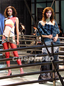 ![]() ![]() ![]() 茉織華經(jīng)典聯(lián)想中國著名時裝設計師作品展,4月29日在上海精文藝術中心舉行。中國著名時裝設計師陳彩霞、張?zhí)鞇邸呛Q、陳文,?lián)袂演繹2002新款時裝。圖為模特在展示中國著名時裝設計師的作品。