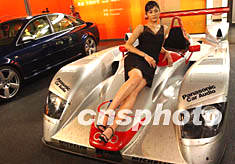 ![]() 一名黑衣模特躺在身經(jīng)百戰(zhàn)的銀色賽車(chē)上,使北京六月的國(guó)際汽車(chē)展富于美女名車(chē)的剛?cè)嶂。賈國(guó)榮 攝