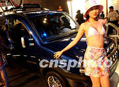![]() 身穿沙灘泳裝的吉普女郎,在北京炎熱天氣里的六月國(guó)際車(chē)展上充滿濃郁的青春氣息。賈國(guó)榮 攝
