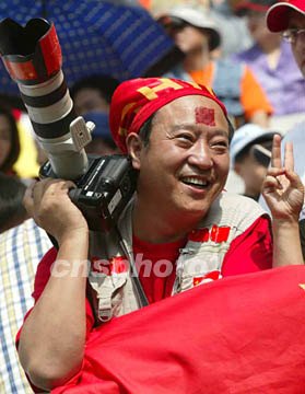 圖:牛群觀戰(zhàn)世界杯 2002年06月13日 22:33 ![]() 中國隊十三日在漢城世界杯體育場迎戰(zhàn)土耳其隊,圖為著名相聲演員牛群觀戰(zhàn)助威。作者:毛建軍