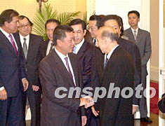 澳門政府與永利渡假村(澳門)股份有限公司簽約 2002年06月25日 08:33 ![]() 澳門特區(qū)行政長官何厚鏵二十四日與永利度假村(澳門)股份有限公司簽署協(xié)議后,與永利部分股東握手。李剛 攝