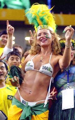 圖:巴西VS土耳其 巴西女郎身著比基尼十分搶眼 2002年06月26日 19:31 ![]() 北京時(shí)間6月26日晚,韓日世界杯第二場(chǎng)半決賽巴西隊(duì)VS土耳其隊(duì)的比賽將在日本琦玉體育場(chǎng)進(jìn)行。圖為看臺(tái)上巴西女球迷身著比基尼翩翩起舞。