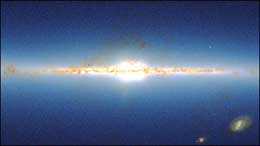 圖文:美國天文學(xué)家繪制出精美銀河系景觀圖 2002年07月02日 10:22 ![]() 銀河系景觀圖 中新網(wǎng)北京7月2日消息:美國馬薩諸塞州立大學(xué)的幾位天文學(xué)家花了五年時(shí)間,利用分別位于美國和智利的兩臺(tái)天文望遠(yuǎn)鏡拍攝到的紅外圖像,組成了從銀河系外部觀看到的這一星系的景觀圖。 天文學(xué)家表示,這一景觀圖類似宇航員飛行到銀河系之外后觀看到的銀河系的結(jié)構(gòu)和景況。上述兩臺(tái)望遠(yuǎn)鏡將天空劃分成大約5萬條天帶,然后利用不同的紅外波對(duì)5億多顆星體進(jìn)行了觀測(cè)。到目前為止,這兩臺(tái)望遠(yuǎn)鏡已經(jīng)為科學(xué)家提供了大量有關(guān)組成銀河系的星體結(jié)構(gòu)和形狀的新信息。 研究小組的負(fù)責(zé)人馬丁·維恩伯格教授表示,上述景觀圖還只是由他們搜集到的一小部分圖像組成的,他說:“通過對(duì)某顆星體的紅外顏色比率進(jìn)行分析我們可以確定星體的整體顏色,然后將這一顏色匯集到銀河系景觀圖當(dāng)中,隨著研究的深入,這一景觀圖將變得更加豐富,從而有助于天文學(xué)界人士從中獲得更多有用的信息!