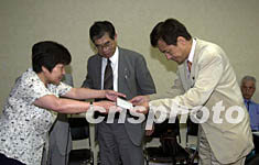 多圖:花岡事件中國受害者在日本國會(huì)舉行集會(huì) 2002年07月02日 19:08 ![]() 三十六名花岡事件中國幸存者和死難者遺屬2日在日本國會(huì)舉行集會(huì),多名日本國會(huì)議員參加。眾議員菅野哲雄在致詞中痛感日本犯下的歷史罪行,表示要與中國受害者一道為爭(zhēng)取正義而斗爭(zhēng)。中新社記者 陶光雄 攝