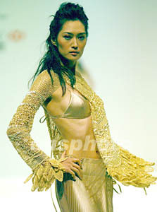 ![]() 香港知名時裝設計師馬偉明設計的一款從側面展現(xiàn)女子美麗身段的上裝,前日在香港時裝節(jié)晚會上展示。任晨鳴 攝