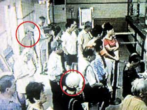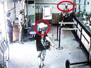 北京懸賞萬(wàn)元征集三元橋銀行劫案嫌犯線索(圖) 2002年08月04日 12:31 ![]() 兩名嫌疑人假作儲(chǔ)戶排隊(duì)觀察儲(chǔ)蓄所內(nèi)周圍情況 ![]() 持刀向柜臺(tái)內(nèi)喊話,另一人沖向柜臺(tái)出入口 中新網(wǎng)北京8月4日消息:7月31日上午9時(shí)35分左右,位于北京朝陽(yáng)區(qū)三元東橋的中國(guó)工商銀行三元橋南儲(chǔ)蓄所發(fā)生了一起持槍搶劫案,兩名犯罪嫌疑人搶劫未遂逃跑。 據(jù)京華時(shí)報(bào)報(bào)道,前天,記者在望京、三元橋等地的居民小區(qū)看見(jiàn)了警方張貼的協(xié)查通報(bào)。目前,根據(jù)相關(guān)資料,案件中現(xiàn)場(chǎng)兩名嫌疑人的特征已被掌握,警方已懸賞1萬(wàn)元向市民征集有價(jià)值的線索。 兩名嫌疑人特征如下: 1.嫌疑人甲,男,25歲左右,身高1.70米左右,體瘦、圓臉、膚色較黑,頭戴白色棒球帽,上穿土黃色T恤衫,下穿灰色帶花格短褲,腳穿白色長(zhǎng)襪,隨身帶一淺黃色袖珍挎包。該人隨身攜帶自制小口徑手槍一支。 2.嫌疑人乙,男,25歲左右,身高1.70米左右,留平頭,膚色較黑,頭戴白色棒球帽,上穿黑灰色T恤衫,下穿白色短褲,腳穿白色長(zhǎng)襪,隨身帶有一黑色挎包。該人持刀。