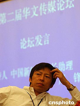 今天的會(huì)議在搜狐公司董事局主席兼首席執(zhí)行官?gòu)埑?yáng)的演講中開(kāi)始。作為成功回國(guó)創(chuàng)業(yè)的“海歸”,張朝陽(yáng)回憶起自己的美國(guó)生活:“我在美國(guó)九年,如果沒(méi)有華文報(bào)紙的話,我的生活會(huì)非常單調(diào),閱讀中文的感覺(jué)真好!