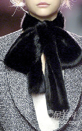 用領(lǐng)巾在頸間系個蝴蝶結(jié)是增加女性風(fēng)情最簡單直接的方法,而YSL就特別在選用皮毛的材質(zhì),女人味與溫暖高貴并存。