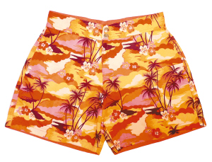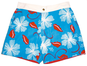 記者在廣州各大商場沙灘褲專柜看到,除了艷麗的花案外,還有很多是卡通圖案的設(shè)計。浩沙專柜店員告訴記者,這類沙灘褲面料多數(shù)是滌綸和棉,質(zhì)地好、圖案別致;有些款式還可以雙面穿,一面是純色,適合在家里和外出逛街時穿,一面是花案,適合沙灘散步穿。