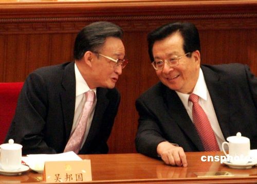 圖:吳邦國、曾慶紅全國政協(xié)閉幕會上交談