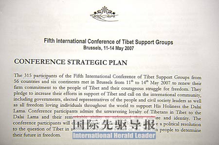 5月14日下午會議結(jié)束后,本報記者輾轉(zhuǎn)從一位外國同行那里得到一份會議結(jié)果文件。這份長達(dá)6頁的文件講述了“西藏流亡政府”及支持西藏國際組織今后幾年的“戰(zhàn)略計劃”以及具體的“行動計劃”。