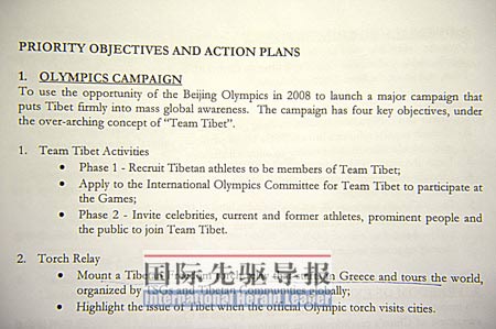 “行動計劃”將針對北京奧運(yùn)會采取行動列為第一點。文件提出該行動有4大目標(biāo),并要在全球范圍內(nèi)招募人員組建一個名為“西藏之隊”(Team Tibet)的隊伍,專門針對奧運(yùn)會采取行動,目標(biāo)人員包括“知名人士、現(xiàn)役和退役運(yùn)動員、杰出人士和民眾”,F(xiàn)在看來,連搶金晶火炬的洛桑·甘丹這類暴徒也是“西藏之隊”網(wǎng)羅的對象。