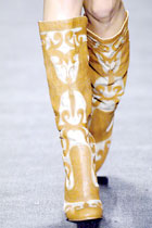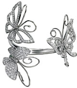 今年設(shè)計(jì)師們強(qiáng)調(diào)蝴蝶的高雅、古典和夢幻色彩。根據(jù)配飾流行情報(bào)透露,本季蝴蝶配飾和鞋包一定大熱。不妨參考一下梵克雅寶今年春夏Envol珠寶系列,精巧古典的單蝶戒指和三蝶手鐲。而另一個(gè)偏愛蝴蝶的設(shè)計(jì)師安娜·蘇本季也推出可愛的冰藍(lán)色和淺咖啡色蝴蝶貼片長靴和手袋。從中我們可以明白一個(gè)道理:本季的蝴蝶要走上流路線,高雅而富有想像力,是公主般的優(yōu)雅蝴蝶。