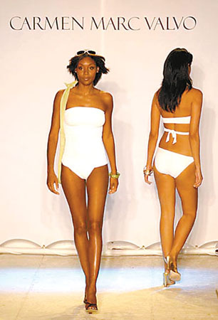 中新網(wǎng)4月13日電 據(jù)廣州日報(bào)報(bào)道,早在上個(gè)季末各大時(shí)裝周發(fā)布2006年春夏時(shí)裝上,Gucci、JeanPaulGaultier等國際大品牌和設(shè)計(jì)師便已經(jīng)將精心設(shè)計(jì)的泳裝新款呈現(xiàn)于觀眾面前。隨著夏天的臨近,從近期巴塞羅那、里約熱內(nèi)盧的泳裝秀上看到,今年春夏的泳裝新品更加年輕化,其中,年輕美眉熱愛的清純、度假、叢林以及鄉(xiāng)村這四大風(fēng)格的泳裝備受關(guān)注。