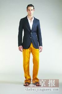似乎每到春暖花開,男裝就開始走“裝嫩”路線,讓很多傳統(tǒng)人士可望而不可及。不過,今年海灘度假風格的男裝開始走折中路線,讓都市白領們在春季玩一把“度假”虛擬游戲。本季男裝以單色為主,而且從去年炫目的嫩綠、玫瑰紅轉為成熟的橙色和土黃色。