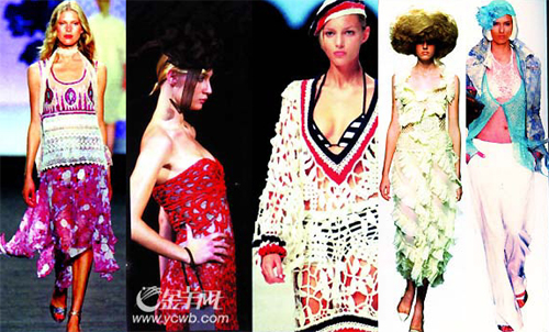 圖5:特別的鏤空編織內(nèi)衣與輕薄的鏤空針織外套搭配,令MichikoKoshino的模特倍顯飄逸。