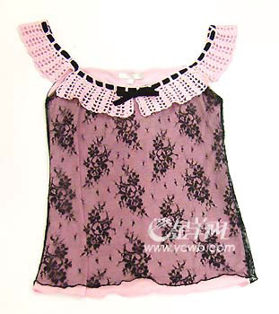 黑色蕾絲紗的加盟,讓荷葉領(lǐng)的小背心少了一絲甜膩,多了一份大氣。