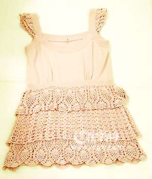 圖1:AnnaSui以面料混搭的針織小背心配飄逸的花瓣裙,彌漫法國式的浪漫田園風(fēng)。