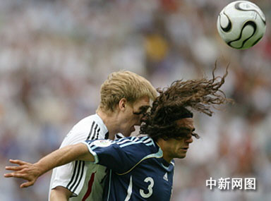 德國與阿根廷兩大足球豪門在世界杯歷史上兩次決賽相遇,各勝一場,第三度的交手今天在二00六年德國世界杯第一場四分之一決賽中上演。這場世紀大戰(zhàn),開場并沒有上演精彩的攻勢足球,雙方打得非常拘謹,唯一一次亮點就是德國隊的施奈德助攻,巴拉克后排插上頭球攻門,可惜力量稍大偏出門柱。