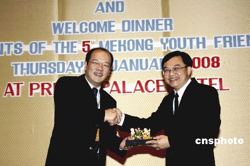 一月十七日,泰國社會發(fā)展與人類保障部副部長蓬得·炳巴提在曼谷禮節(jié)性會見了來自大湄公河次區(qū)域的中國、緬甸、泰國、柬埔寨、老撾和越南六國的青年代表,并分別與中國等六國青年代表團合影。中新社發(fā) 孫宇挺 攝