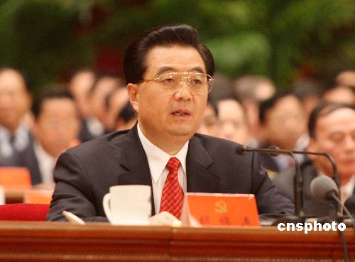 十月二十一日,中國共產黨第十七次全國代表大會在北京人民大會堂閉幕,中共中央總書記胡錦濤發(fā)表講話。中新社發(fā) 毛建軍 攝
