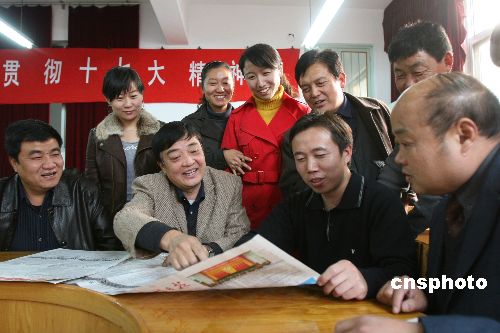 10月23日,河南省開(kāi)封市文化藝術(shù)學(xué)校的黨員干部正聚在一起學(xué)習(xí)貫徹“十七大”會(huì)議精神。中國(guó)共產(chǎn)黨第十七次全國(guó)代表大會(huì)剛剛閉幕,河南省開(kāi)封市各界黨員干部和群眾迅速掀起學(xué)習(xí)貫徹十七大精神的熱潮,大家紛紛表示要以十七大精神為動(dòng)力推動(dòng)當(dāng)前工作,堅(jiān)持開(kāi)拓進(jìn)取、不斷創(chuàng)新,譜寫人民美好生活新篇章。中新社發(fā) 凱楓 攝