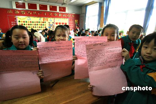 11月5日,“嫦娥一號(hào)”衛(wèi)星成功減速,進(jìn)入月球軌道。山東師大附小為此舉辦了“嫦娥一號(hào)”主題慶祝儀式,師生們在祝賀“嫦娥一號(hào)”成功奔月的橫幅上簽字。孩子們還向研制“嫦娥一號(hào)”的科學(xué)家們寫了熱情洋溢的祝賀信,表達(dá)對(duì)他們的祝賀和自己要好好學(xué)習(xí)、建設(shè)祖國的決心。中新社發(fā) 周青先 攝