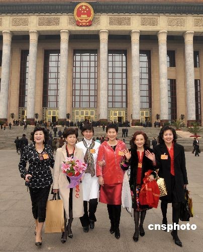 三月八日,國際勞動婦女節(jié),全國政協(xié)女委員參加完大會笑容燦爛走出北京人民大會堂。中新社發(fā) 廖攀 攝
